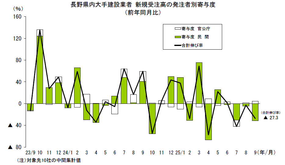 - 長野県内大手建設業者の受注動向(2025年9月)(110KB)(PDF文書)