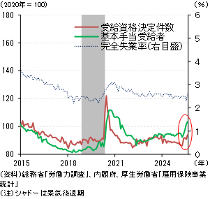 求人倍率の低下や失業率の上昇、雇用保険関連指標の増加など、足もとの雇用関連指標は軟化しつつある(図表2)。いずれも水準自体は懸念すべき状況にはないものの、人口減少下における構造的な人手不足という前提に囚われず、多角的な統計分析による慎重な情勢判断が求められるのではないか(詳細はレポートをご覧ください)。