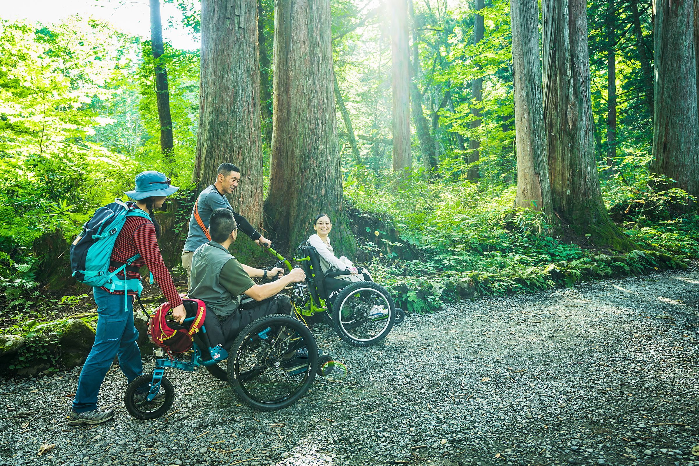 戸隠観光協会は、戸隠エリア内の飲食店や観光施設に対してバリアフリーなどの対応状況について聴き取りを行うとともに、車いすでも歩きやすい散策ルートなどを調査し、それらの情報をまとめた「車椅子で歩く戸隠マップ」を作成しています。また、同観光協会の中に「ユニバーサルツーリズムデスク」という専用窓口を設置し、旅行希望者に対する訪れやすいルートの提案やサポート、アウトドア用車いすなど関連用品の貸し出しを行っています。