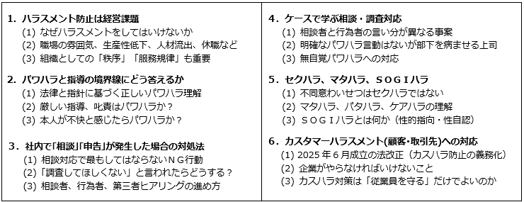 実務セミナー:企業のハラスメント防止と相談・調査対応の実務ポイント