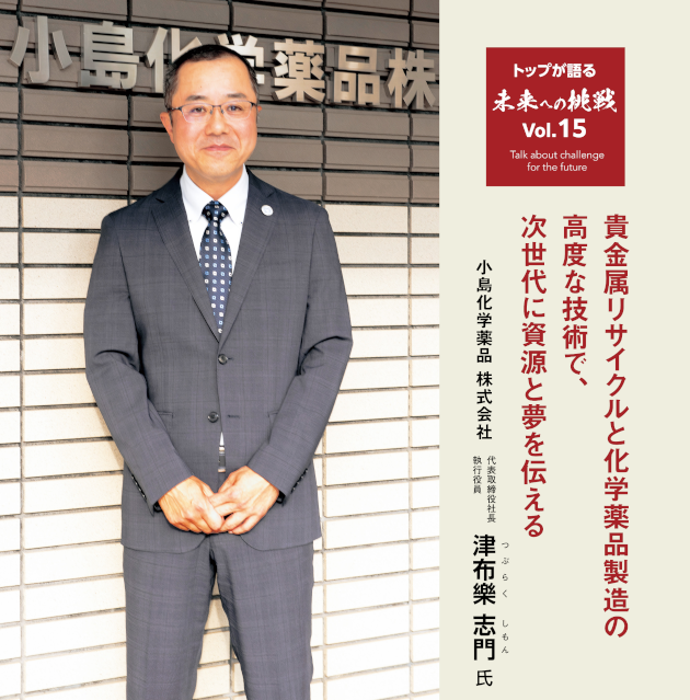 埼玉県狭山市に本社を置く小島化学薬品(株)は、主力の貴金属リサイクル事業のほか、貴金属薬品や貴金属めっき薬品の製造等を手掛けています。同社でリサイクルした貴金属地金は純度99.99%以上を誇り、医療や航空宇宙を含むさまざまな分野で使用され高い評価を得ています。